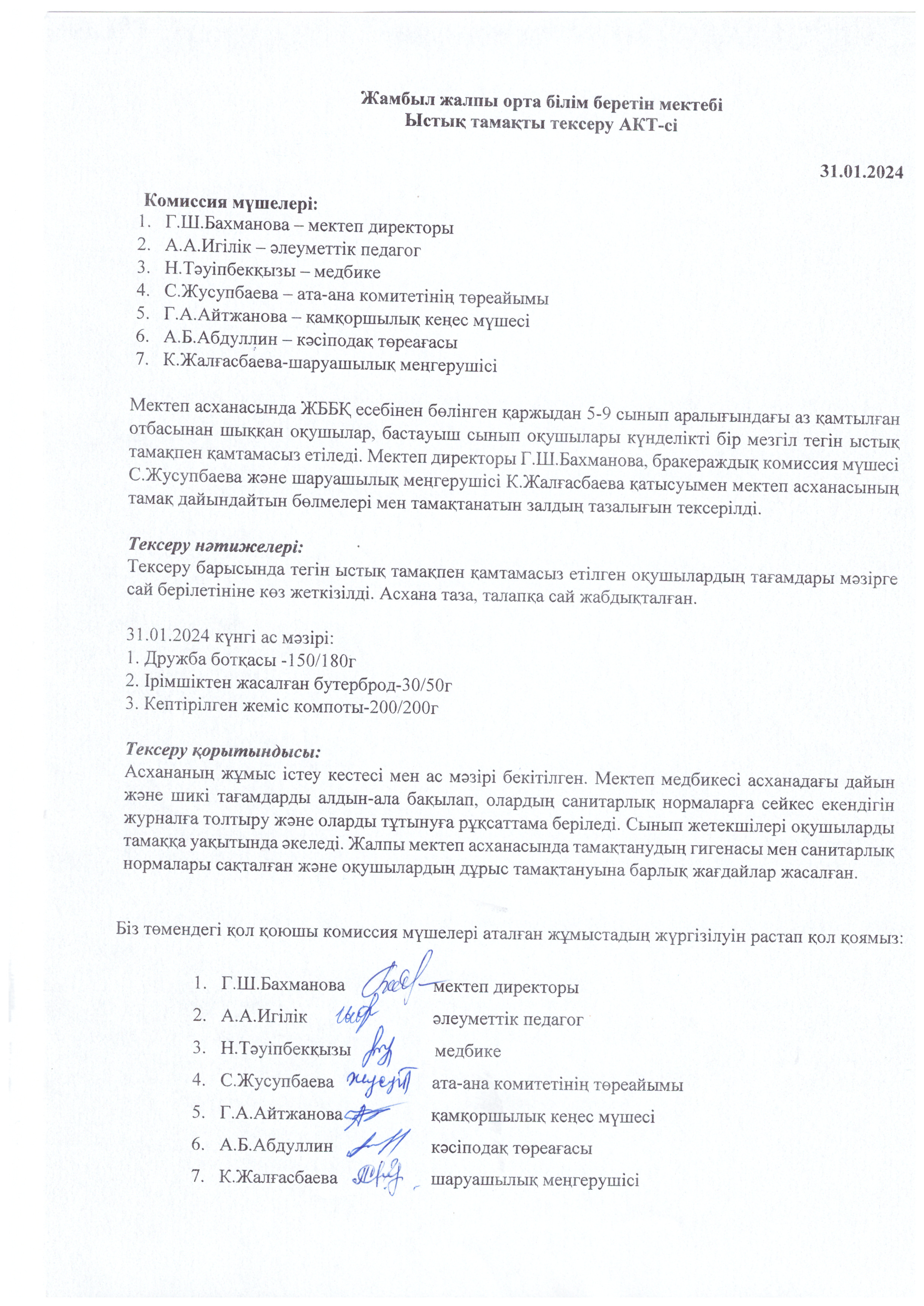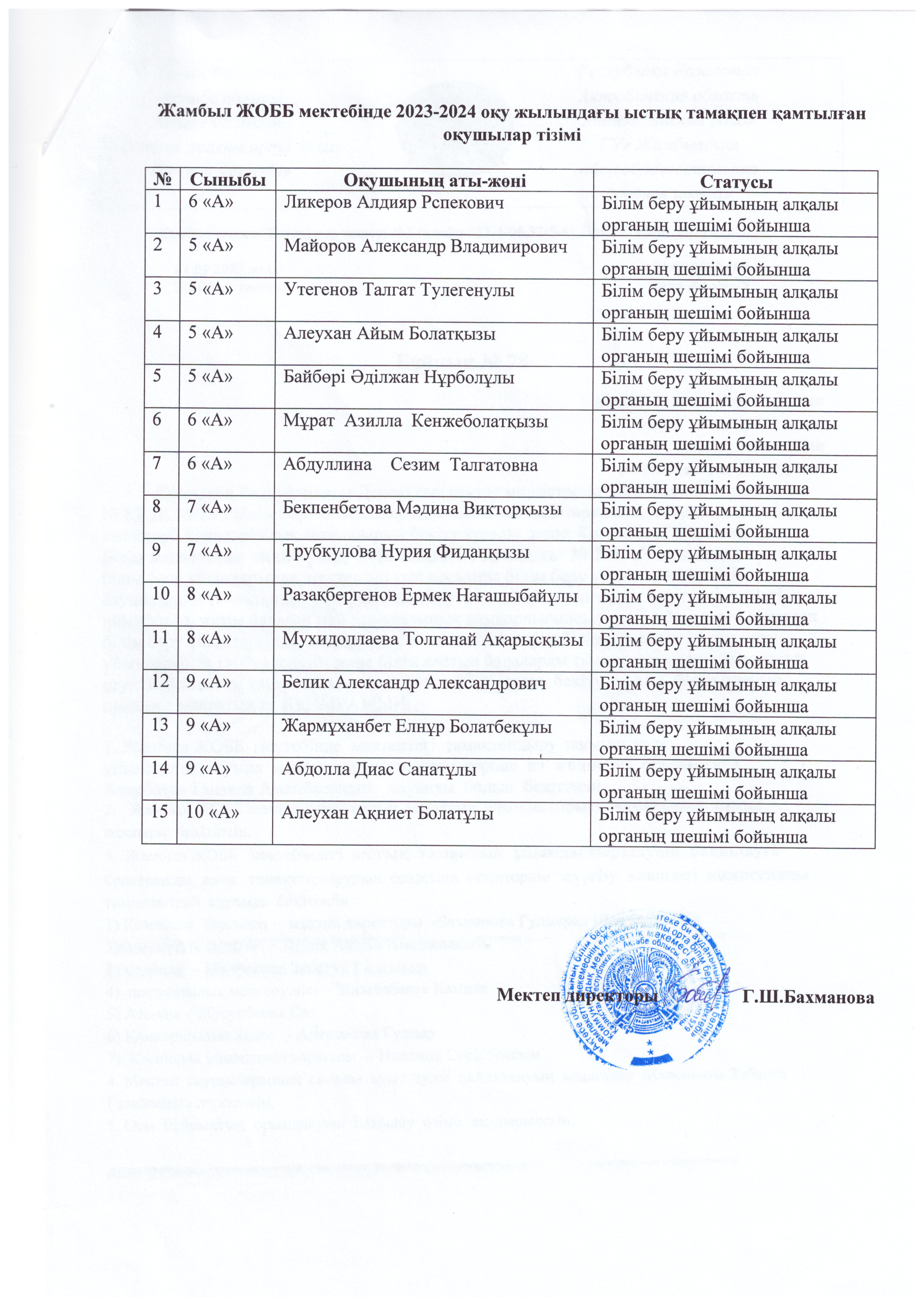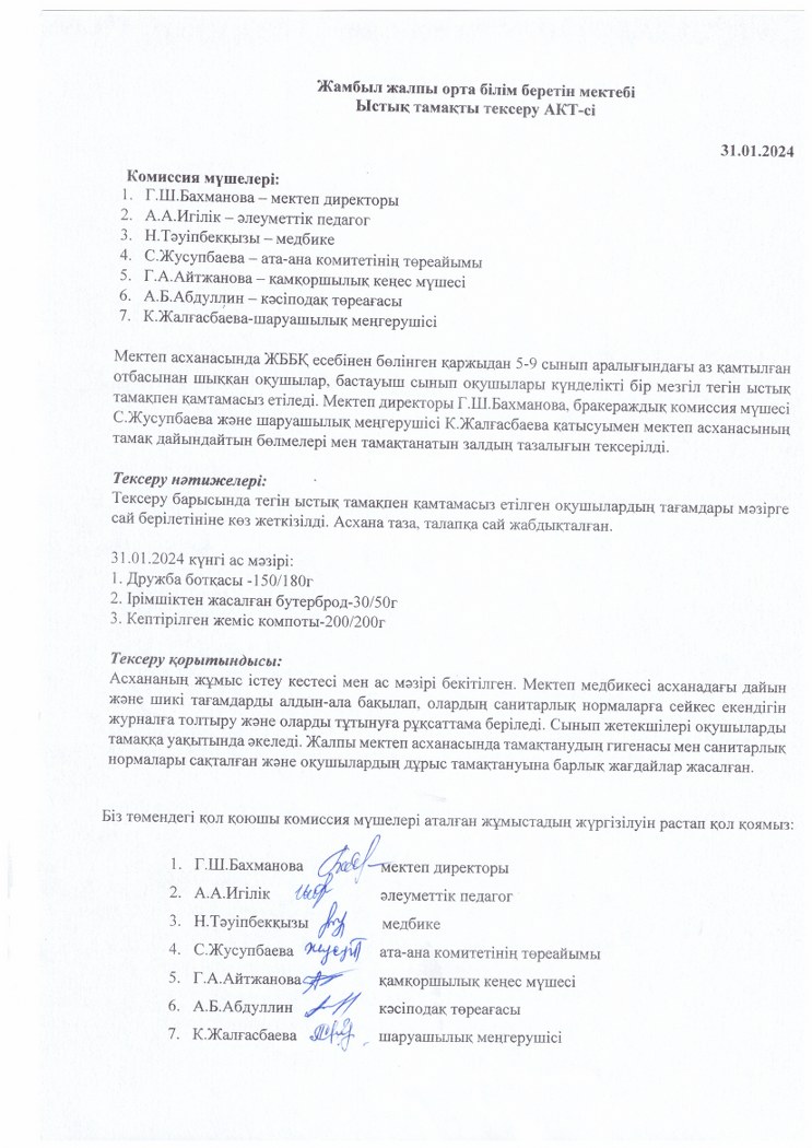 Жамбыл ЖОББ мектебінде 2021-2022 оқу жылында ыстық тамақпен қамтамасыз етілетін оқушылар туралы анықтама |